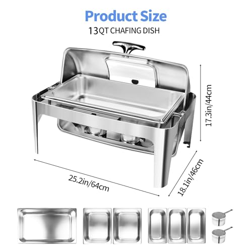 Specification: 13 QT Chafing Dish Buffet Set,Stainless Steel Food Warmer with Perspective Window for Parties, Wedding, Birthday,Catering, Hotels and Weddings,1 Full&2 Half&3 Third Size Pan