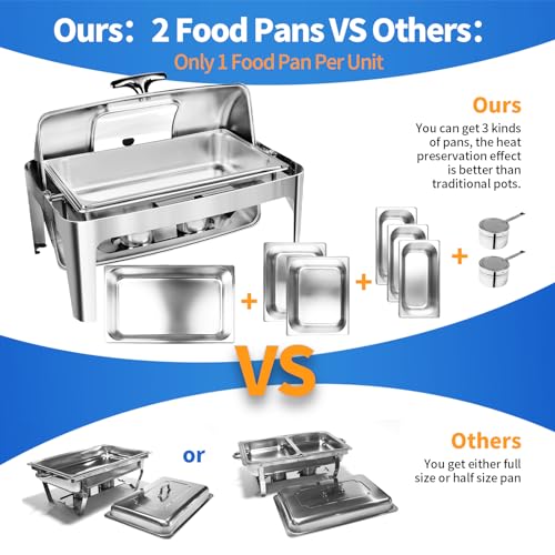 High Quality Stainless Steel,Strong&Durable: Our chafing dish is made of strong stainless steel material, so it can hold the temperature well. Compared with other products, the legs of our products are more stable and not easily deformed. Thanks to such characteristics, our products can be used for a very long time.