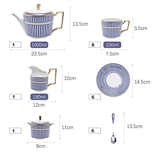 Specification: 15 Pieces Porcelain Tea Set Coffee Cup and Saucer Sets, Blue Stripes Tea Service with Teapot, Sugar Bowl, Cream Pitcher,Spoons