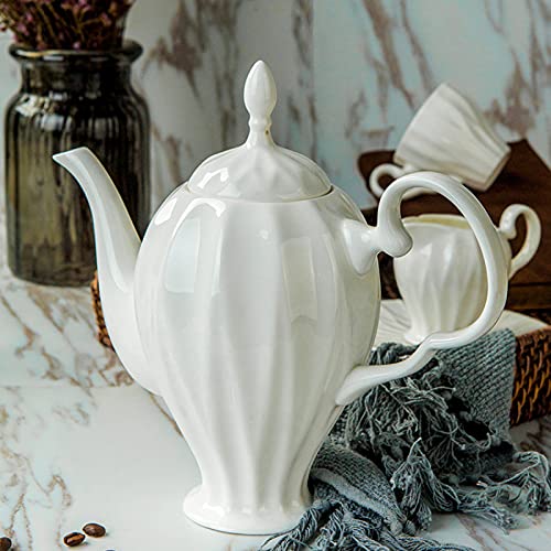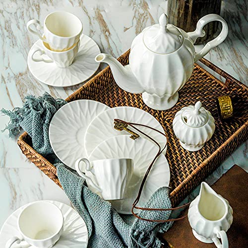 Specification: 15 Pieces Porcelain Tea Set Coffee Cup and Saucer Sets,Tea Service for 6, Wedding Teapot Sugar Bowl Cream Pitcher, China Coffee Set, White