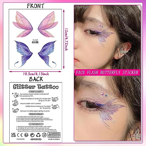 Specification: 18 Sheets Glitter Butterfly Temporary Tattoos Sticker Colorful Waterproof Flash Fairy Wings Body Art Shiny Butterflies Flowers Eye Face Makeup Fake Tattoos for Women Girls Eye Decorations Supplies