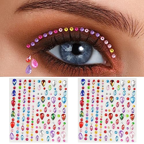 2PCS Face Gems Eye Jewels Stickers Self Adhesive Rhinestones Gems Crystals Pearls Decal Rainbow Rhinestone for Makeup Hair Body Stick Gems for Women Festival Accessory and Nail Art Decoration