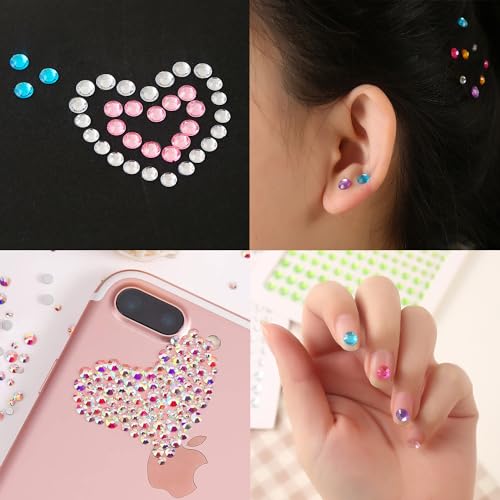 【EASY TO USE】 – Every gemstone attaches to a self adhersive tape at the back. It is super convenient for you to pick the gems with the tape and stick them directly. It would be a good choice to use these self adheresive rhinestones for face and body make-up, DIY craft and home decoration etc.