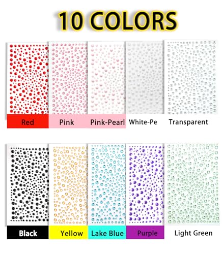 【Package Contains】 – You will receive 10 sheets of rhinestone and pearl stickers with 10 colors and 4 sizes(3/4/5/6mm),among which, there are 2 pearl stickers (white&pink) and 8 rhinestone stickers with colors as shown in the pictures.Each sheet has 325pcs. 3250pcs in Total.