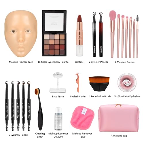 Specification: 3D 5D Makeup Practice Kit, Reusable Silicone Makeup Mannequin Face for Makeup Students and Beginners, Come with Makeup Brushes Set & Dual head Eyebrow Pencils & Eyeliners & Pair of Eyelashes