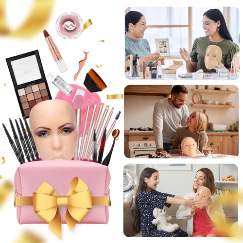 3D 5D Makeup Practice Kit, Reusable Silicone Makeup Mannequin Face for Makeup Students and Beginners, Come with Makeup Brushes Set & Dual head Eyebrow Pencils & Eyeliners & Pair of Eyelashes