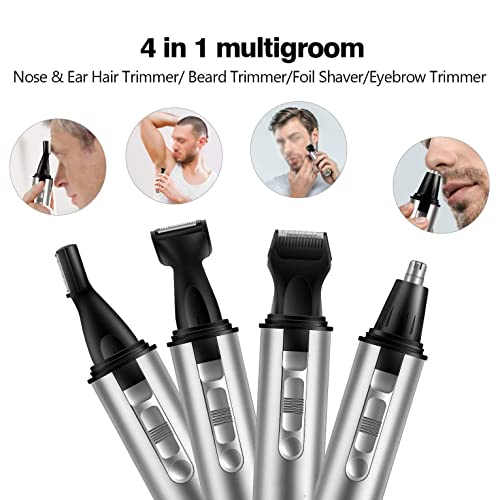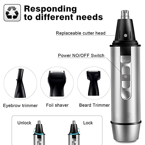 4 in 1 Nose Hair Trimmer for Men, Battery Powered Nose and Ear Trimmer Clipper, Waterproof Eyebrow & Facial Hair Trimmer for Travel, Bathroom, Camping Razor
