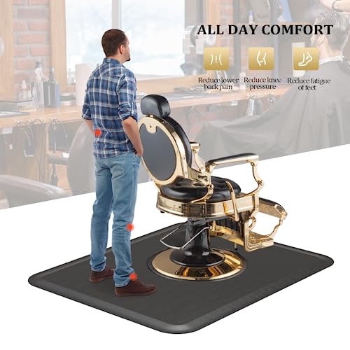 4’x 5’x 1/2” Thick Salon Mat for Hair Stylist, Barber Floor Mats with Round Base, Salon Chair Mat Comfort Standing, Barbershop Beauty Spa Equipment
