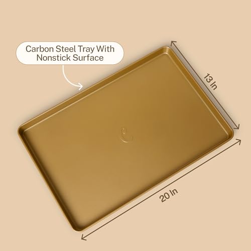 Effortless Cleanup: Say goodbye to scrubbing stuck-on food with our nonstick gold Better Baker sheet pan. Its nonstick surface ensures easy release, making cleanup a breeze and bringing joy to your kitchen routine.