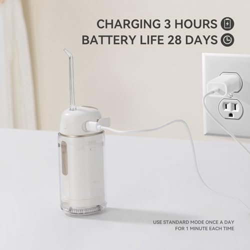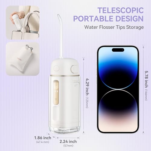 Upgraded Folding Design & Stylish Shape: This portable travel water flosser features a retractable water tank that prevents leaks and a hidden, retractable tip, significantly reducing its size. Weighing only 200 grams, it’s easy to carry on trips. The simple and vibrant color design makes it a perfect companion for both everyday use and travel!