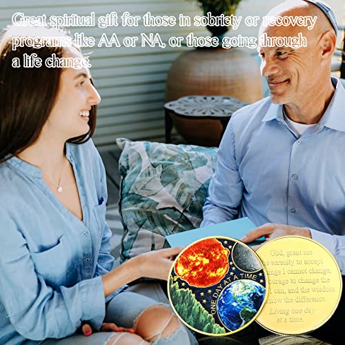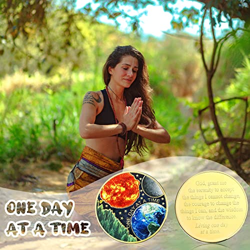 Come with 1 piece of one day at a time sobriety coin in stunning color and 3D graphics and texts, and also with 1 piece of AA coin holder keychain, an ideal spiritual set for those in sobriety or recovery programs.