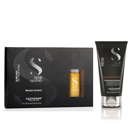 ALFAPARF MILANO Semi di Lino Sublime Cellula Madre Beauty Genesis Vials (12 Vials / 0.44 fl oz each) + Thickening Multiplier for Fine Hair (5.07 fl oz) – Adds Body and Volume for Healthy Hair