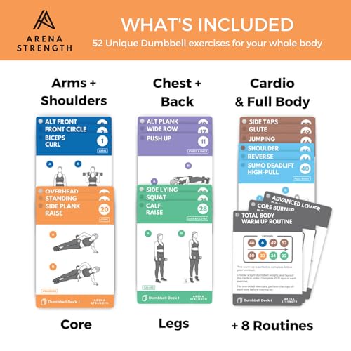 CREATE AWESOME WORKOUTS IN SECONDS: Our dumbbell exercise card decks are easy-to-follow and you can create fun and motivating workouts in seconds. Simply shuffle the deck, lay out your cards and start your workout.