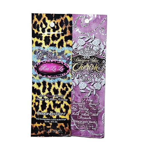 Designer Skin Fever 13.5oz 85X Bronzed Beauty DHA Bronzer Tanning Lotion with Packet of Designer Skin Rue La La Warming Intensifier and Designer Skin Cherish included 85X Bronzed Beauty Blend: Potent combination of cool-toned instant bronzers delivers intense color immediately upon application while DHA continues to develop and darken. Invigorating Skincare Complex: Provides a Ceramide to the skin to help prevent aging, improve skin barrier function, boost skin hydration and increase skin smoothness. Sodium PCA is a valuable humectant that draws new moisture to the skin while retaining hydration for a supple, healthy appearance. Age Rebellion: a mixture of amino acids and a Collagen stimulating peptide that work in unison to help fight the signs of aging. Glow Off: Niacinamide, a skin-loving vitamin, is known to improve dull, uneven skin tone to help boost brightness while enhancing skin radiance and luminosity. Pure Luxury Silicone Blend: A mixture of the most luxurious silicones, blended to perfection that glide on the skin effortlessly for a lush experience. This also helps to spread the high levels of instant bronzers for an even, flawless tan. ATO Inhibitor: Deodorizing agents and delicious fragrance notes keep skin smelling fresh. Silicone Blend, Niacinamide, Amino Acids, Collagen, DHA & Natural Bronzers White Peach Oasis Fragrance 85X Bronzed Beauty Blend Invigorating Skincare Complex Age Rebellion Glow Off Pure Luxury Silicone Blend ATO Inhibitor Silicone Blend, Niacinamide, Amino Acids, Collagen, DHA & Natural Bronzers Fragrance White Peach Oasis