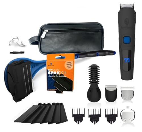 BAKBLADE 2.0 DIY back & body shaver is specifically designed to swiftly shave your back and body hair in just minutes- be it wet or dry. BODBARBER 11-in-1 Body Groomer, with over 11 attachments to groom your whole body from head to toe, including groin, nose, ear & hair, you will never want to go back to your old manscaping routine. Shirt on or off, you’ll enjoy clean confidence with every shave. Join over tens of thousands of men who are already enjoying the convenience of BakBlade 2.0 & our revolutionary products. Included Items: 2.0 ELITE Plus BakBlade Shaver BODBARBER 11+1 Body Groomer Nose & Ear Trimmer Hair & Beard Trimmer Design Trimmer Guide Combs 6 PAK DryGlide blade refill Travel Bag & Mount