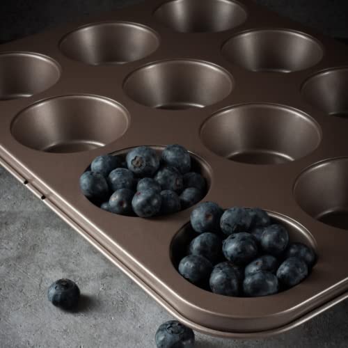 👍 Set includes: 10×15” Baking Sheets 2-Pack, 5×9” Loaf Pan (1lb). and 12-Cup Muffin Pan