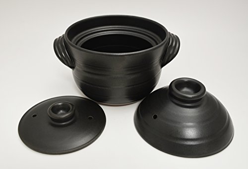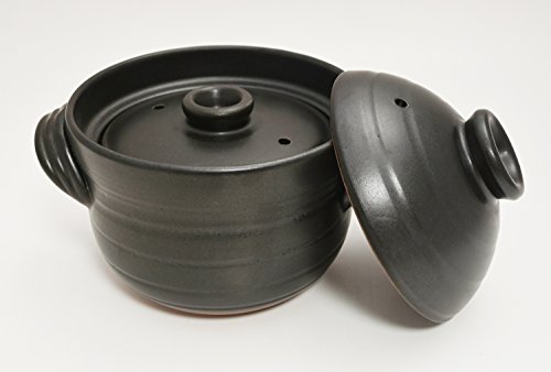 Specification: Banko Ware Rice Pot Handmade Black Glaze Two Cup Capacity Made in Japan