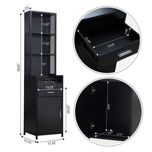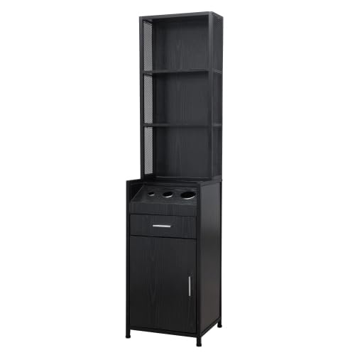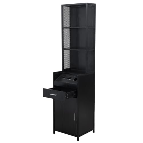 Specification: Barber Salon Station for Hair Stylist, Beauty Salon Station with Drawer, Shelf and Storage Cabinet, Beauty Spa Equipment, Black