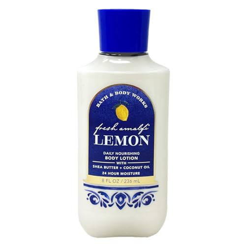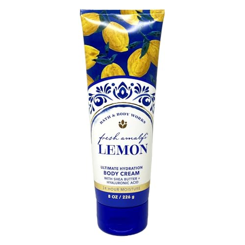 Bath and Body Work FRESH AMALFI LEMON 4 Piece Deluxe Gift Set. INCLUDES: 8 fl oz / 236 mL Fine Fragrance Mist, 8 oz / 226 g Ultimate Hydration Body Cream, 10 fl oz / 295 mL Body Wash, and an 8 fl oz / 236 mL Daily Nourishing Body Lotion. What it smells like: bright, summer days spent on the coast. Fragrance notes: lemon leaves, chilled spearmint and cedarwood citrus.