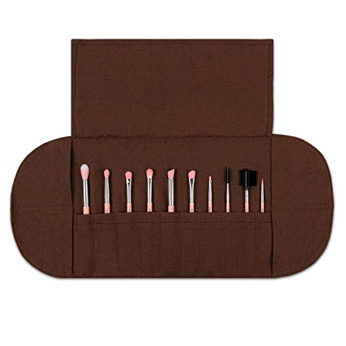 The collection of perfect blending and lining tools you need to create beautiful eyes. Includes eco-friendly Pink Bambu Roll-up Pouch. Linen roll-up pouch has 20 pockets to accommodate varying sizes of brushes, plus 4 side pockets to store small or loose items in place.