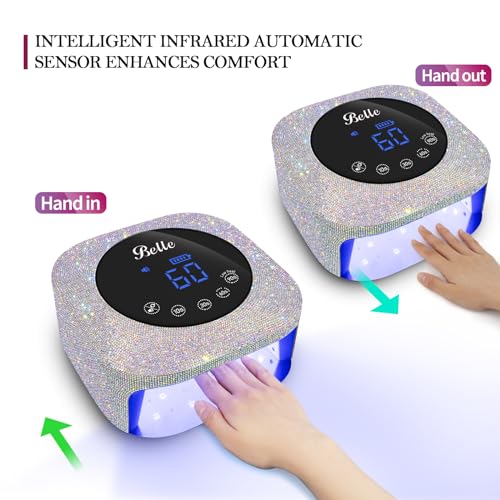 Belle Cordless UV LED Nail Lamp, Large Screen Gel Dryer with Touch Control & Sensor Timer, Rechargeable Nail Curing Lamp for Salon & Home
