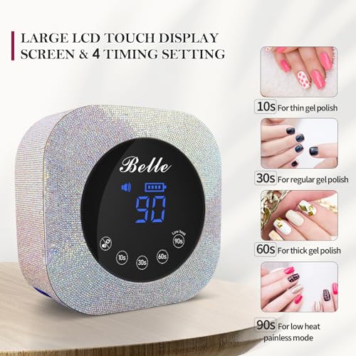 Specification: Belle Cordless UV LED Nail Lamp, Large Screen Gel Dryer with Touch Control & Sensor Timer, Rechargeable Nail Curing Lamp for Salon & Home
