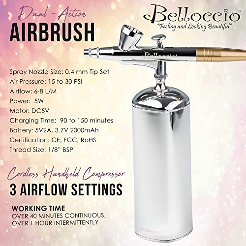 Specification: Belloccio Cordless Handheld Airbrushing Makeup System Only – 15 to 30 PSI, Rechargeable, Multiple Uses Cakes, Hobby, Art, Crafts