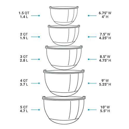 Specification: Belwares Stainless Steel Mixing Bowls Set of 3 & 5 with Lids, 1.5 Quarts, BPA Free, Non-Slip Bottom, Oven-Safe