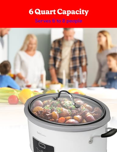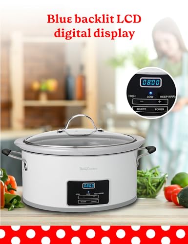 Betty Crocker 6-Quart Oval Digital Slow Cooker, Programmable Crock Pot Up to 20 Hours, Electric Cooking Pot with LCD Digital Display, Removable Stoneware Crock Liner, Betty Crocker Cookbook,White