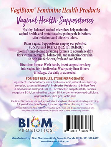 Specification: Biom Vaginal Probiotic Suppository: Natural Vaginal pH and Odor Control Regimen; Balance and Nourishes Vaginal Microbiome; No Parabens, Fragrance-Free (30)