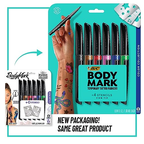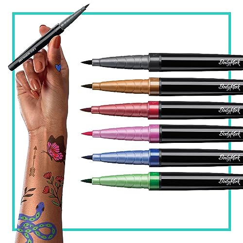 Specification: BIC BodyMarkTemporary Tattoo Markers for Skin, Color Collection, Flexible Brush Tip, 6-Count Pack of Assorted Colors, Skin-Safe*, Cosmetic Quality