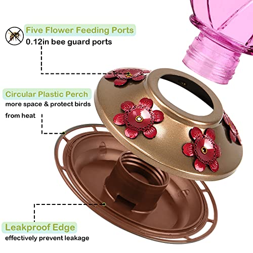 Five Feeding Ports – Purple hummingbird feeder with 5 red flower shape feeding ports and circular perch, enjoy more space and allow hummingbirds to perch and feed at the same time.