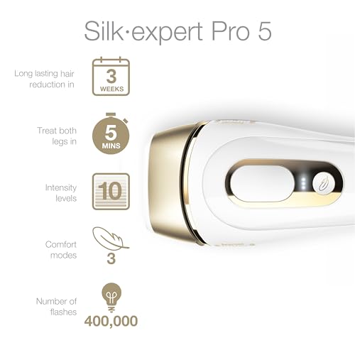 Braun Silk Expert Pro5 IPL Hair Removal Device for Women & Men – Lasting Hair Regrowth Reduction, Virtually Painless Alternative to Salon Laser Removal