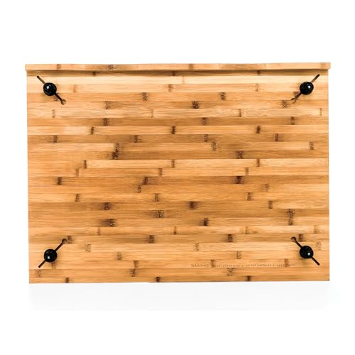 Camco Stove Top Cover – Features Adjustable Legs & Built-In Juice Groove – Crafted of Natural Bamboo – Fits Most Stove Tops & Measures 29.5” (L) x 21.25” (W) x 2.5” (H w/feet) (43548)