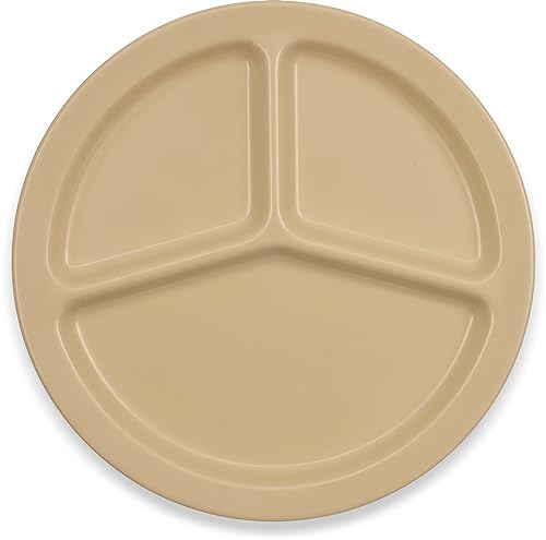 Carlisle FoodService Products Kingline Reusable Plastic Plate with 3 Compartments for Restaurants, Cafeterias, and Fast Food, Melamine, 10 Inches, Tan, (Pack of 48)