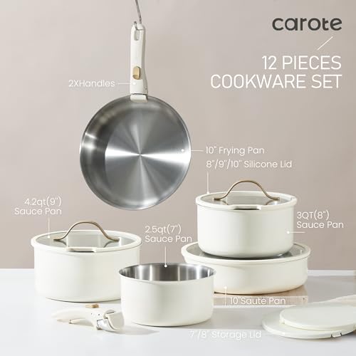 Specification: CAROTE 12pcs Pots and Pans Set, Stainless Steel Cookware Set Detachable Handle, Induction Kitchen Cookware Sets with Removable Handle, RV Cookware Set, Dishwasher Safe, Oven Safe