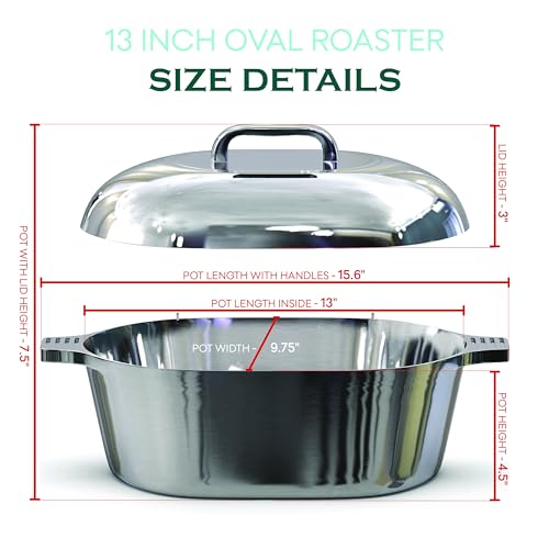 Specification: Cast Aluminum Dutch Oven with Lid – 8 Quart Oval Lightweight Pot For Cajun Cookware, Bread Baking & More – Roaster Pan with Silicone Covers & Rack For Even Heat Distribution (13 inch)