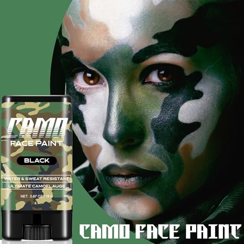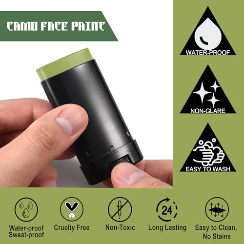 Specification: CCbeauty 3-Color Camo Face Paint+10 Wipes-Oil Camouflage Hunting Accessories for Spirit Week,Water & Sweat Resistant Safe Army Militarty Makeup Stick for Costume Party,Cosplay, Black+Brown+Green