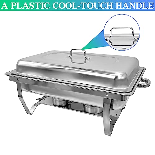 Chafing Dish Buffet Set (4 Pack) Chafers 8QT Buffet Servers and Warmers, Chaffing Servers with Covers, Catering, Chafer, Folding Stand, Food Warmer for Parties Buffets