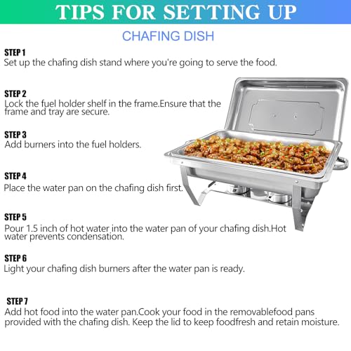 Specification: Chafing Dish Buffet Set (4 Pack) Chafers 8QT Buffet Servers and Warmers, Chaffing Servers with Covers, Catering, Chafer, Folding Stand, Food Warmer for Parties Buffets