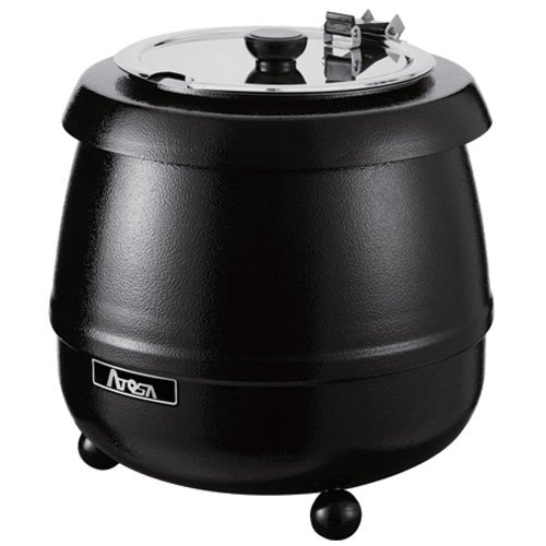 Soup kettle is designed to keep soups and sauces at the perfect temperature. Adjustable temperature control. Stainless steel interior liner for easy clean-up and maximum durability. 101/2 Qt. capacity. Black powdercoated aluminum. 120V. 400 watts. 143/16″Diam.x153/4″H. Cord and plug included. 12 lbs.