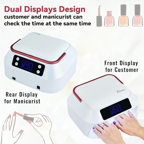 ✨Dual Displays Design & 4 Timer Setting:The uv lamp with Dual LCD display ,customer and manicurist can check the time at the same time.The uv nail lamp with 4 timer settings (10s, 30s, 60s, 90s ) ,you can choose according to your needs easily. And the gel nail lamp is also equipped with infrared sensor lights, hands in, lights on,and out to light off which allows you to cure gel polish nails convenient and time-saving.