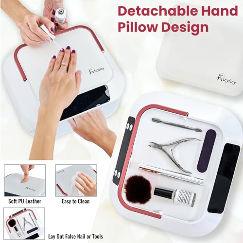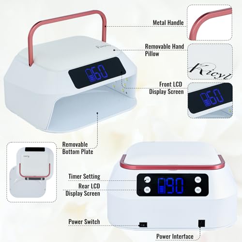 ✨2 In 1 Dual Hands & PU Hand Pillow Design: Kicylicy uv nail lamp is Big size,professional nail lamp for press-on nails or cure 2 hands at one time. Innovative removable PU pillow design,enjoy a relaxing and supported manicure experience, reducing hand and wrist fatigue. You also can lay out false nail or tools. Say goodbye to clutter and discomfort!Make your customers enjoy more comfortable and better service.