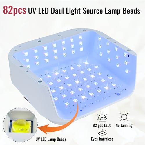 ✨High Power,Quick Drying: Powerful 218W nail dryer with 82 Pcs durable beads(dual wavelenght 365+405 nm)can cure all kinds of nail gels more faster shortens the curing time by 80% than normal nail light.