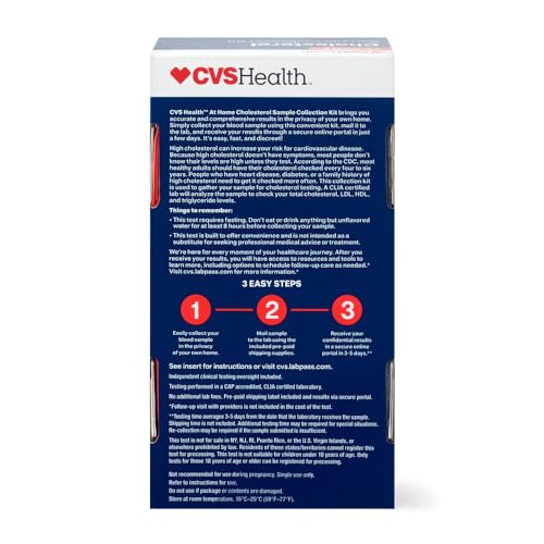 Specification: CVS Health at-Home Cholesterol Test Kit – Quick & Easy Blood Sample Collection for LDL, HDL, Total Cholesterol & Triglycerides Levels