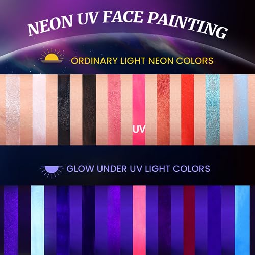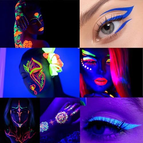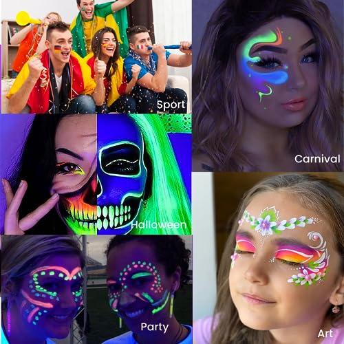 【Perfect for Festival】Glow face paint has a strong night vision, which can make your body glow. Ideal for club events, carnivals, rave, halloween makeup, parties, concerts, stage shows and any venue that uses ultraviolet lighting. The glow in the dark face paint is cute and portable, it can be placed in a small bag, turn the body into an artistic masterpiece anytime and anywhere.
