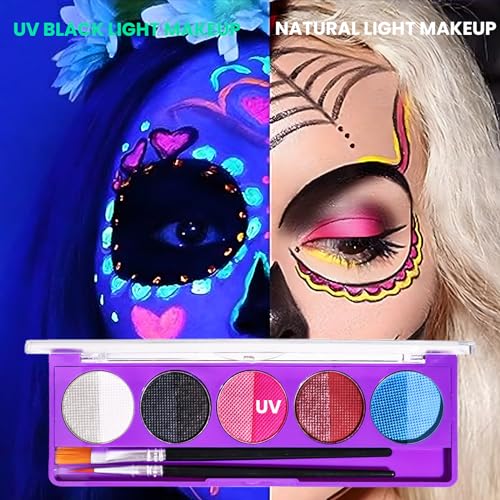 Specification: DAGEDA Water Activated Eyeliner Palette, Glow in the Dark Face Paint Neon Face Painting Kit,10 Colors UV Body Paint with 2 Brush, Body Glow for Halloween Makeup(02)