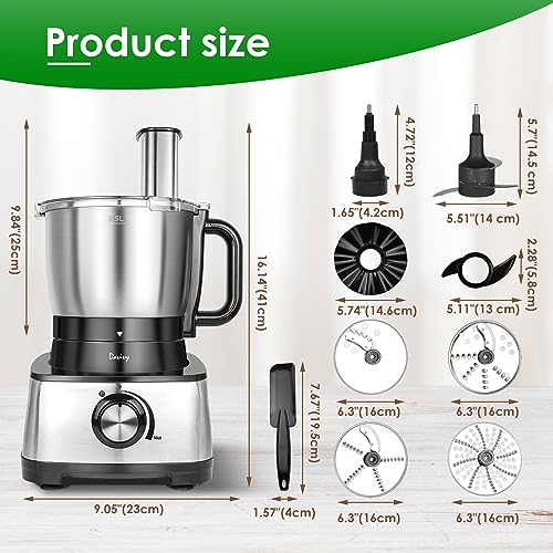 Specification: Davivy Food Processor 13 Cup,Stainless Steel Bowl Food Processor,7 Blades with 9 Functions Vegetable Chopper for Home Use,Stepless Variable Control,Black,600W (13-Cup Stainless Steel Bowl)
