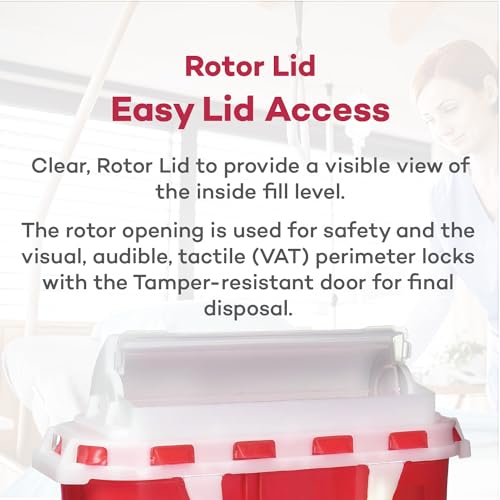 Durable Material: Made with shatter and puncture resistant material, the sharps containers provide extra safety between uses for users and patients while the clear rotary lid maximizes usable container volume for larger sharps disposal.