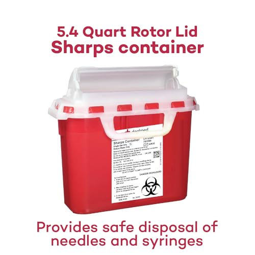 Dealmed Sharps Container, 5.4 Quart Rotor Lid, Made in The USA, Red (Case of 20): Designed for Multipurpose use. Maximizes usable container volume for larger sharps. Shatter & Puncture-resistant. Locks for final disposal.